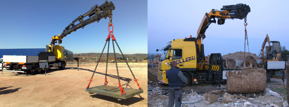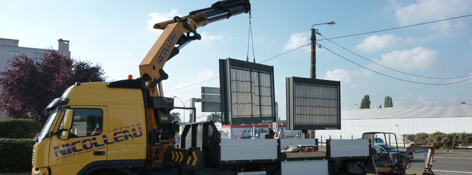 L'entreprise Nicolleau est spécialisée dans le domaine de la pose de signalétiques et la location de grues auxiliaires avec chauffeur et manutention. Nous proposons tout travaux de levage car notre parc matériel nous permet de répondre à toutes vos demandes : levage de charpentes, mobiliers urbains et signalétique, bigbag d'agrégats, blocs de béton, rochers ... en savoir +